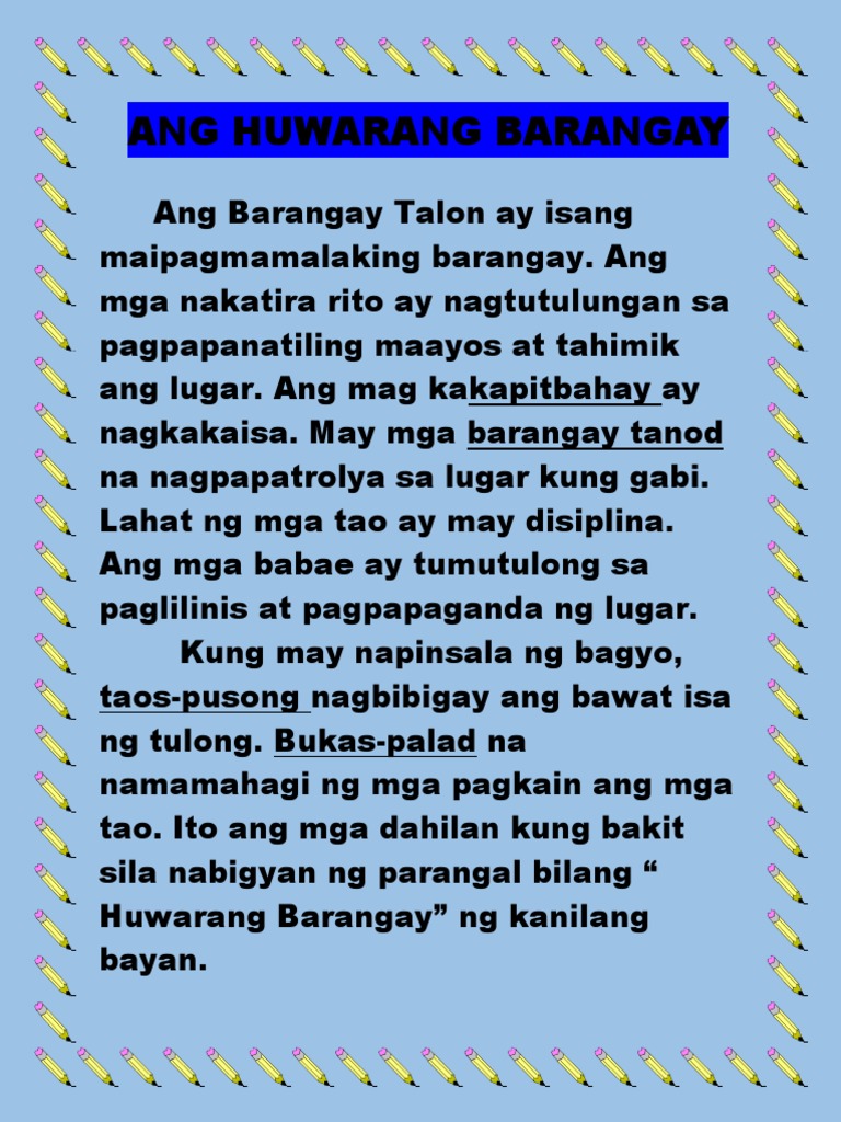 Ang ano kahulugan essay ng. DOH ang ahensiyang ito ang nangunguna sa pangangalaga sa kapakanang pangkalusugan ng mga mamamayan ng bansa ng PilipinasAng pangkasalukuyang kalihim ay si Francisco Duque III. 2020-02-12 Ang kahulugan ng Huwarang ay isang modelo tinitingala iniidolo tinutulad at pinaparisan.